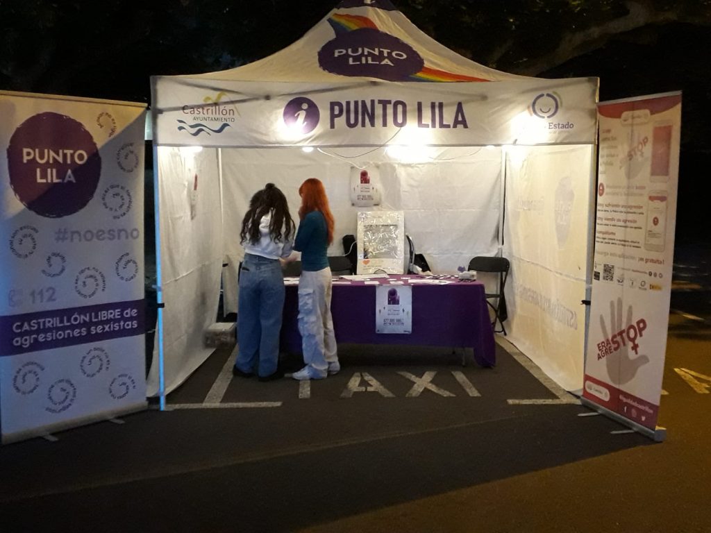 Es un espacio seguro para las mujeres donde se dará asistencia a cualquier persona que haya sufrido una agresión sexista. Es una herramienta de intervención en la prevención de la violencia sexual y de género en el ocio festivo y/o nocturno, y de sensibilización de la población contra las agresiones sexuales y sexistas. Es un servicio que se puede contratar por parte de los Ayuntamientos con la Asociación solicitando condiciones y presupuesto. Además, ofrecemos servicio de formación para el personal voluntario del Punto Lila.